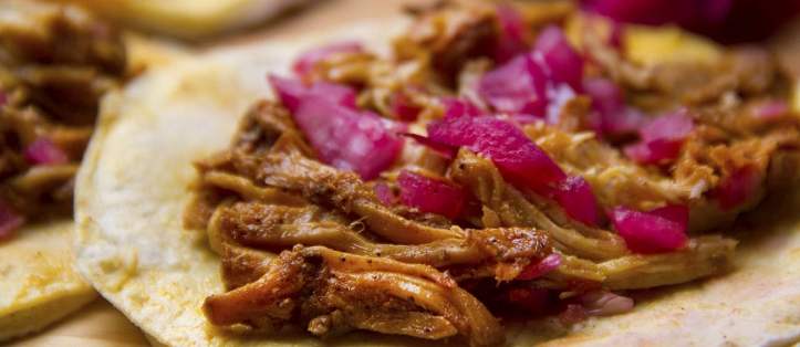 Cochinita pibil, Yucatan kökenli bir Meksika domuz eti yemeğidir. Domuz eti, annatto ezmesi, acı portakal suyu ve sarımsak karışımıyla marine edilir. Yavaş yavaş pişirilir ve parçalanarak tortilla, taco veya tek başına arpacık soğanı, turşu, salsa sosu ve çeşitli kavrulmuş sebzelerle servis edilir.