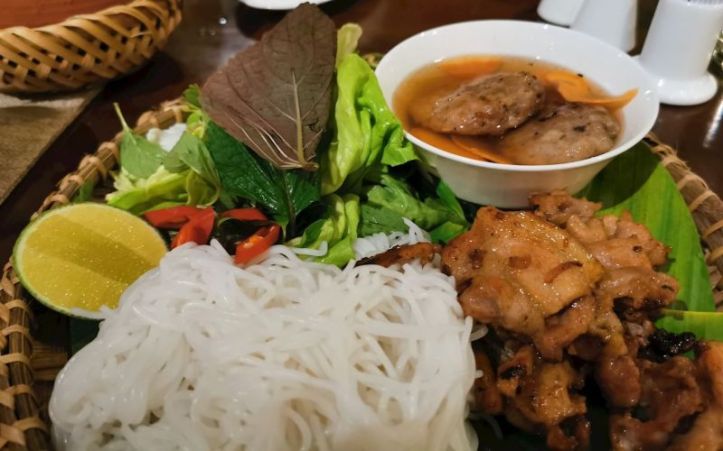 Bún chả, ortaya çıktığına inanılan yer olan Hanoi ile karmaşık bir şekilde bağlantılı bir domuz eti ve erişte yemeğidir. Yemek üç unsuru birleştiriyor: soğuk bir et suyunda servis edilen bir kase ızgara domuz eti, bir tabak pirinç eriştesi ve perilla yaprakları, marul, kişniş ve sabah ihtişamı gibi çeşitli taze yeşilliklerin bir kombinasyonu.