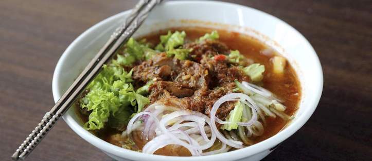 Penang’da, sokak satıcıları sabahın erken saatlerinden akşam geç saatlere kadar assam laksa hazırlıyor. Geleneksel olarak, yemek koyu ve zengin bir Malezya tarzı karides ezmesi olan hae ko ile servis edilmelidir.