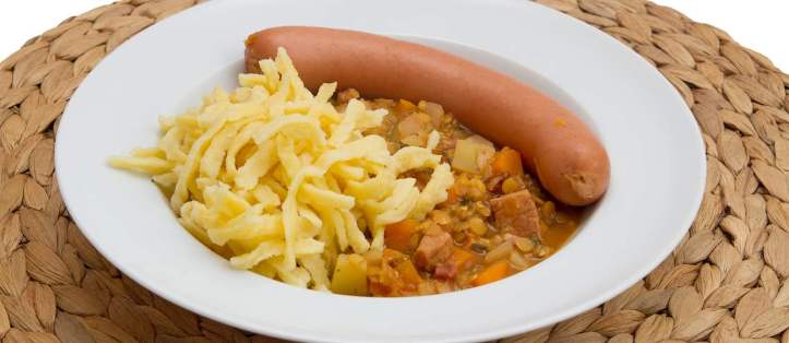 Geleneksel Suabiya mutfağının temellerinden biri olan linsen mit spätzle, kalın ve kremsi kahverengi mercimek (linsen) ile yumuşak yumurtalı erişte (spätzle) birleştirir. Mercimek, domuz pastırması ve sebzelerle kavrulur ve daha sonra yumuşayana ve genellikle meyane ile koyulaştırılan et veya sebze suyunda tamamen pişene kadar kaynatılır.