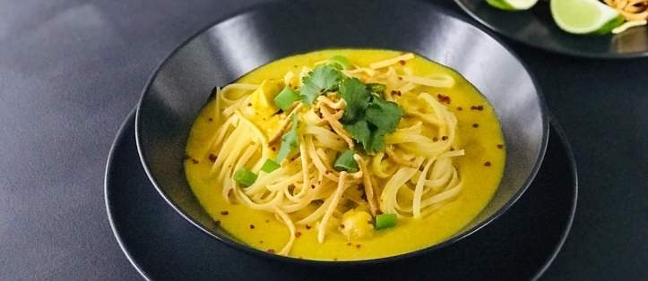 Servis yapmadan önce çorbayı ısıtın. Her bir tabağa bir avuç makarna koyun ve üzerine sıcak tavuklu hindistan cevizi çorbasını dökün.