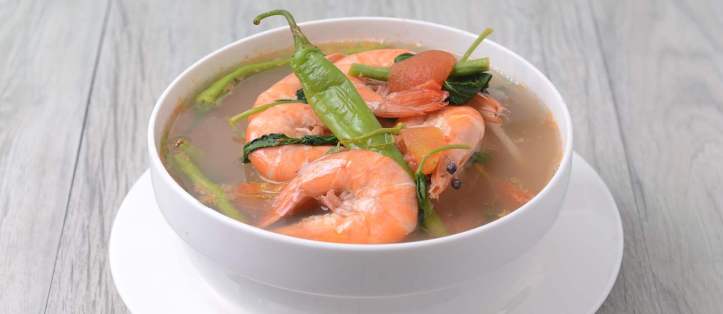 Sinigang na hipon, ekşi ve güçlü tadı ile karakterize edilen Filipin karides çorbasıdır. Karidese ek olarak, bu yemek soğan, domates, çalı fasulyesi, muz biberi, su ıspanağı, taro ve turp gibi çok çeşitli sebzeler içerir ve ekstra lezzet için zencefil ve balık sosu eklenir.