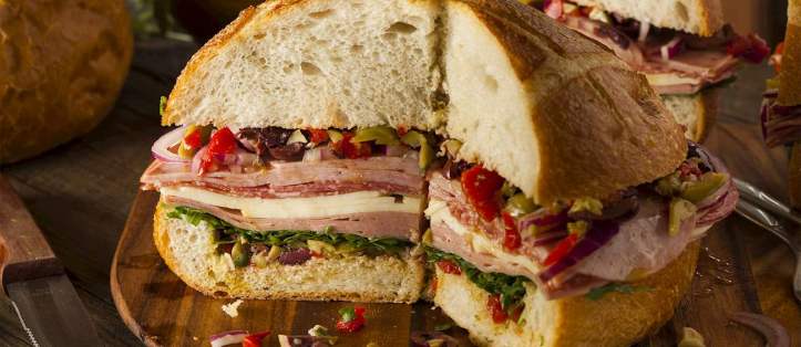 Muffuletta, zeytin salatası, salam, jambon, mortadella, mozzarella ve provolone gibi peynirlerle doldurulmuş bölünmüş somundan oluşan büyük bir sandviçtir. Başlangıçta New Orleans’ta İtalyan göçmenler tarafından yapıldı.