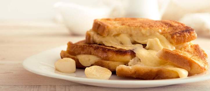 Sandviçler bir kez birleştirildikten sonra una ve soğuk suya (böylece peynir dışarı sızmaz), ardından çırpılmış yumurtalara batırılır ve dışı gevrekleşene kadar kızartılır.