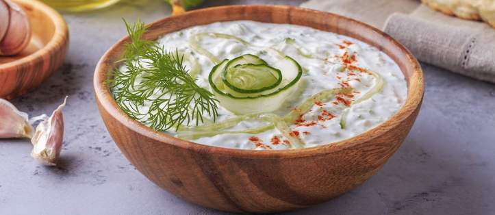 Tzatziki sosunu buzdolabında en az 1 saat dinlendirin, böylece aromaların birbirine karışması ve sosun kıvamının iyileşmesi için zaman verin.