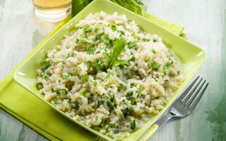 Risotto con panna e rucola, İtalya’dan gelen geleneksel bir pirinç yemeğidir. Genellikle risotto pirinci, et suyu, soğan, tereyağı, rendelenmiş peynir, roka, krema, tuz, biber ve sek beyaz şarap karışımı ile yapılır. Soğanlar yumuşayana kadar tereyağında sotelenir, ardından pirinç, beyaz şarap ve et suyu ile pişirilir.
