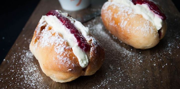 Ekmekler tamamen soğuduktan sonra, ortadan ikiye kesin ve her birine krema ve reçel ekleyin.
