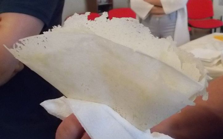 Hamuru birkaç saat dinlendirin, ardından mümkün olduğunca ince bir hamur levhası olarak açın.