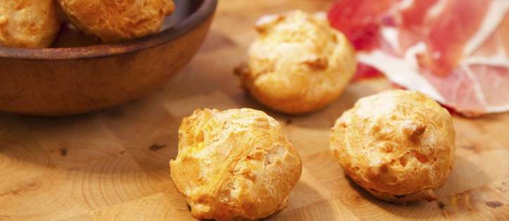Gougères, en yaygın olarak rendelenmiş Comté, Emmentaler veya Gruyère olmak üzere, choux hamuru ve peynirden yapılan küçük, içi boş pasta puflarıdır. Bu peynirli puflar genellikle şampanya veya şarap gibi içeceklerin yanında soğuk veya oda sıcaklığında servis edilir, ancak başlangıç olarak sıcak olarak da servis edilebilir.