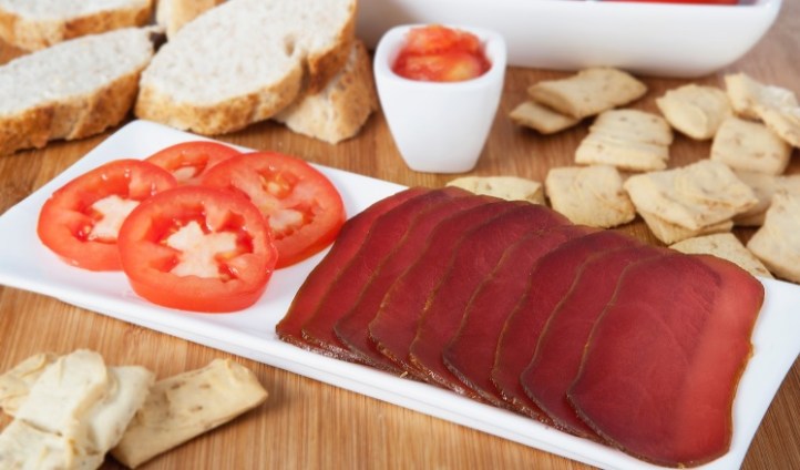 Mojama, özellikle İspanya’nın güney ve doğu sahil şeridinde bulunan bir gıda ürünüdür. Mojama, kurutulmuş, tuzlanmış ve daha sonra basınç altında sıkıştırılmış ton balığı filetosudur. Bu işlem, mojamanın yoğun bir lezzete ve jelatinimsi bir kıvama sahip olmasını sağlar.
