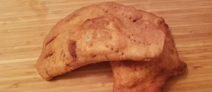 Hamuru tekrar yoğurun ve ince bir şekilde açın. Hamuru yuvarlak veya yarı daire şeklinde kesin. İç malzeme karışımından bir kaşık alarak hamurun ortasına yerleştirin. Hamurun kenarlarını sıkıca kapatın ve şekil verin.
