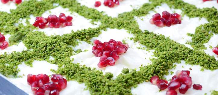 Taze nane yaprakları, çilek, dövülmüş ceviz ve toz fıstık ile süsleyin.