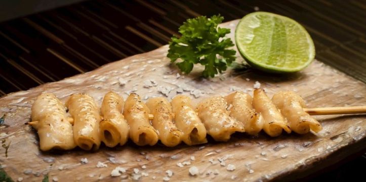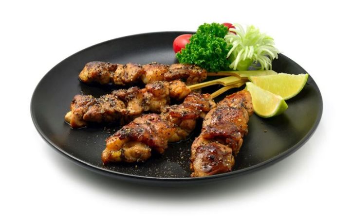 Tahta veya bambu şiş kullanıyorsanız, bir saat suda bekletin. Izgarayı veya piliçleri önceden ısıtın. Tavuk parçalarını şişlere geçirin ve ciğerler için yaklaşık 3 dakika, taşlıklar için 10 dakika ve but için 6 dakika çevirerek ızgara yapın veya kızartın.