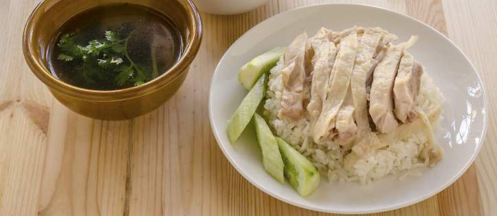 Aslen Çin’in güneyinde bulunan tropik bir ada olan Hainan’da icat edilen mütevazı Hainanese chicken rice, Singapur’daki en popüler yemeklerden biri haline geldi. Isırık büyüklüğünde parçalar halinde kesilmiş ve ardından kokulu beyaz pirinçle servis edilen buğulanmış tavuktan oluşur.