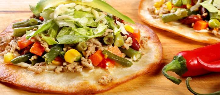 Meksika’da tostadalar genellikle kıyılmış tavuk, fasulye, chili, marul ve avokado dilimleri ile doldurulur.