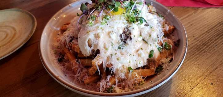 San Diego, California’dan gelen bu Amerikan-Meksika füzyon yemeği, et, peynir (genellikle Cotija peyniri), guacamole ve ekşi krema ile kaplanmış patates kızartmasından oluşur. Ekşi krema ve guacamole, karışmamaları için kabın ayrı taraflarında olmalıdır.