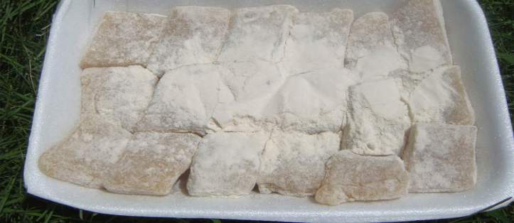 Her parçayı elinizle silindir şeklinde yuvarlayın ve üzerini hafifçe daha fazla kavrulmuş pirinç unuyla kaplayın.