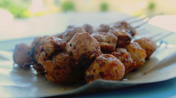 Köfteler ızgara yapıldıktan sonra, sambal oelek ve zeytinyağı karışımını her bir köfteye sürün.