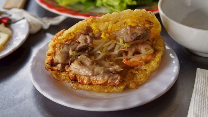 Bánh khoai, Hue’dan gelen geleneksel bir Vietnam yemeğidir. Hamur tipik olarak pirinç unu, su, yumurta, şeker ve tuzun bir kombinasyonu ile yapılır. Tavada kızartılır ve dilimlenmiş mantar, domuz eti, karides, fasulye filizi, havuç, Vietnam usulü sosis parçaları ve taze soğan ile doldurulur, ardından gevrek ve altın rengi kahverengi olana kadar kızartılır.