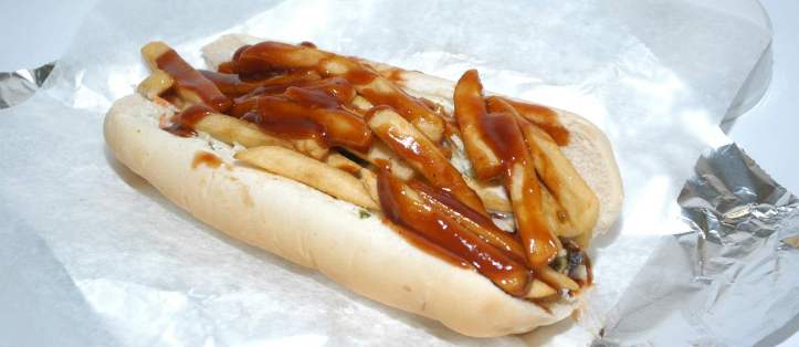 Bu tarifte, kızarmış patates, coleslaw ve barbekü sos ile süslenmiş sıcak Polonya sosisi kullanılır.