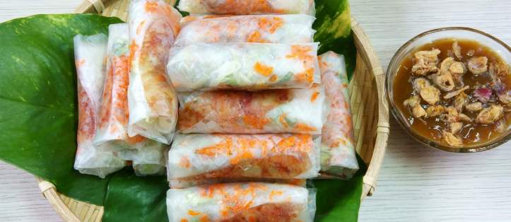 Hazırladığınız Bò Bía rulolarını sos ile birlikte servis yapın.