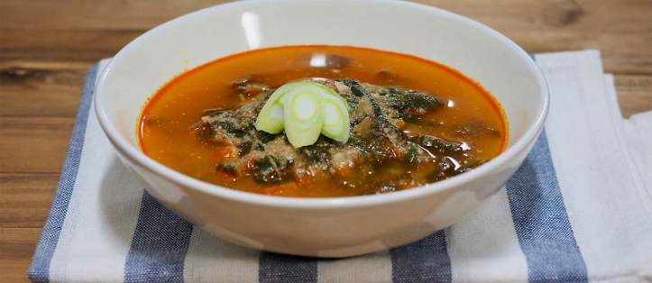 Bu doyurucu Kore çorbası, çamur balığı (loach), biber salçası, soya fasulyesi ezmesi ve zencefilden oluşurken, en yaygın eklemeler hardal yeşillikleri, yeşil soğan ve lahana gibi çeşitli yeşil sebzeleri içerir. Seul’de çorba bütün balıkla hazırlanır, ancak en popüler versiyon, çamur balıklarının tipik olarak öğütüldüğü Namwon’dan gelir.