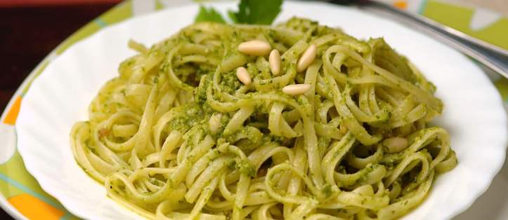 Ligurya’da trenette veya bavette al pesto genellikle üzerine kızarmış çam fıstığı ve biraz fazla rendelenmiş parmesan serpilerek servis edilir.