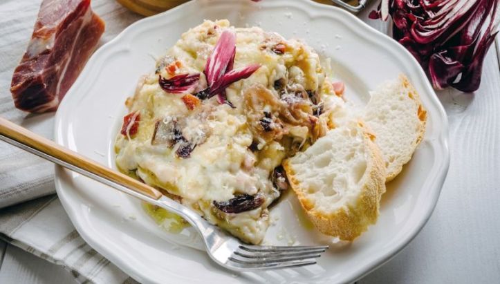Veneto’da yemeğe pasticcio di radicchio da denir. Radicchio lazanyanın birçok çeşidi vardır – lazanya yaprakları, beşamel sos, tuz, biber ve genellikle biraz sarımsak ve parmesan gibi yemeği yapmak için gerekli olan önemli bileşenlerin yanı sıra salsikya sosisi, ceviz, benek, ve Piave, Gorgonzola, Scamorza ve Fontina gibi peynirler bulunur.