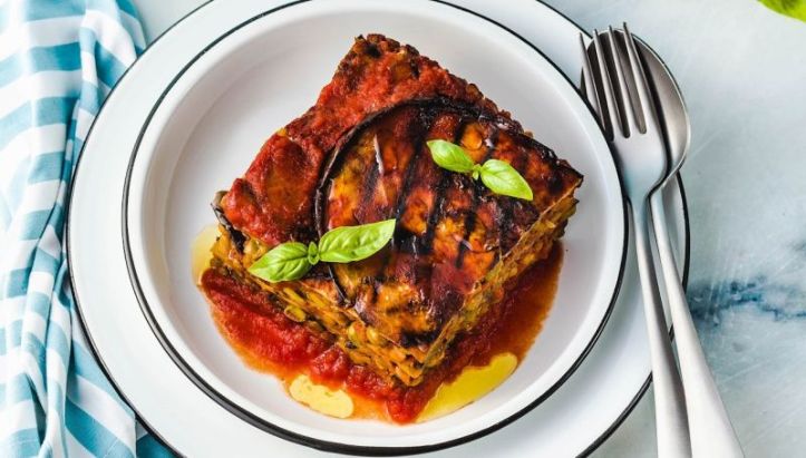 Patlıcanlar dilimlenir, tuzlanır, süzülür ve altın rengi olana kadar yağda kızartılır. Domates sosu, domates, zeytinyağı ve sarımsak ile yapılır. Fırına dayanıklı bir kabın dibine yayılır ve üzeri pişmiş lazanya yaprakları, domates sosu, patlıcan dilimleri, mozzarella peyniri, rendelenmiş peynir ve fesleğen ile süslenir.