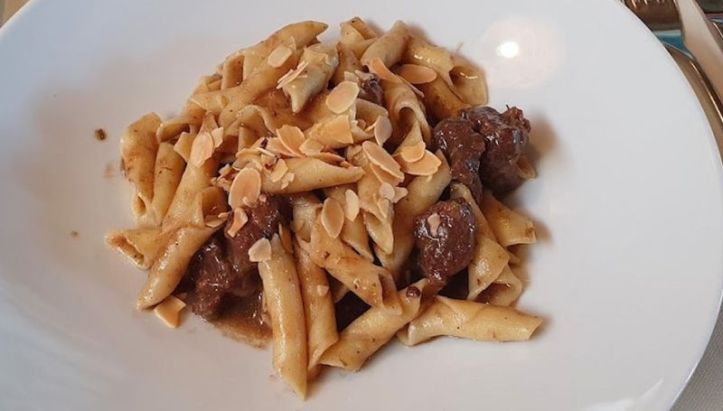 Daha sonra un serpilir ve kavrulmuş soğan ve sarımsak, domates, defne yaprağı, mercanköşk ve kırmızı şarap ile pişirilir. Sos koyulaştıktan sonra yemek, pişmiş makarna ile servis edilir.