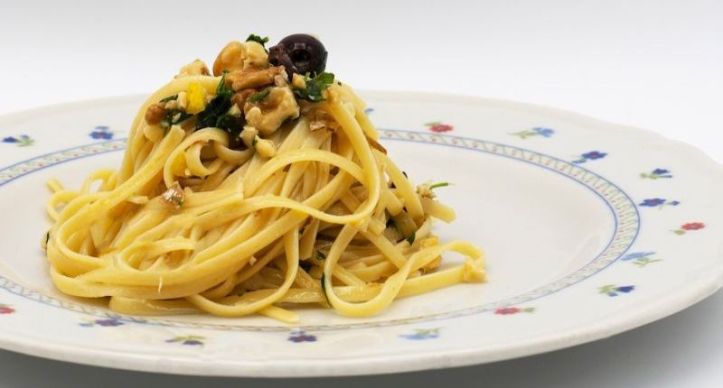 Linguine con le noci, Abruzzo’dan gelen geleneksel bir İtalyan makarna yemeğidir. Yemek genellikle linguine makarna, sarımsak, ceviz, zeytinyağı, maydanoz ve tuzun bir kombinasyonu ile yapılır. Makarna tuzlu suda al dente kıvamına gelene kadar haşlanır.