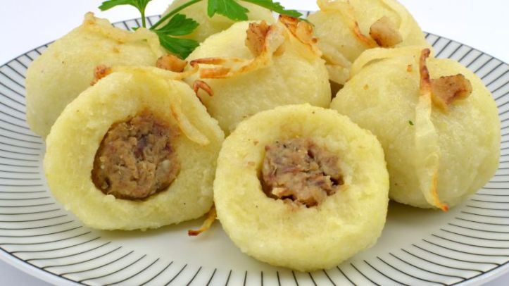 Bu ünlü Polonyalı patatesli et mantısının hamuru, yemek için esnek ve yumuşak bir hamur elde etmek için un, tuz ve yumurta ile karıştırılmış ezilmiş veya rendelenmiş çiğ patates veya bazen her ikisinin bir kombinasyonu ile yapılır.