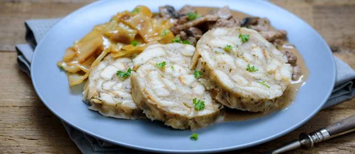 Serviettenknödel’leri dilimleyin ve sıcak soslu yemeklerin yanında servis yapın. Özellikle gulasch, rosto et veya soslu mantarlı yemeklerle iyi eşleşir.