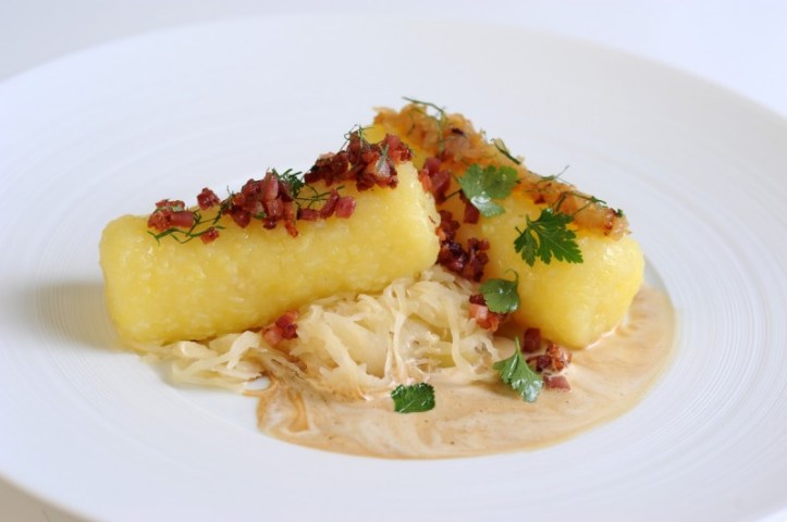 Genellikle uzun, dikdörtgen veya yumurta şeklindedirler ve kaynar tuzlu suda kaynatılırlar. Bu yemeğin adı, kaba rendelenmiş patateslerden dolayı pürüzlü, tüylü benzeri dış yüzeylerine atıfta bulunarak “tüylü” anlamına gelir. Yemeğe genellikle, kremalı domuz pastırması sos ve bir tarafı lahana turşusu veya elma sosu eşlik eder.