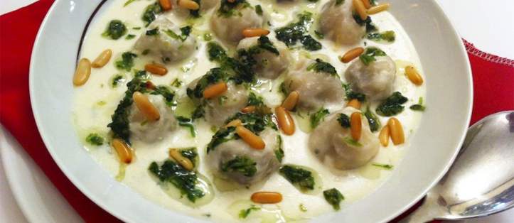 Levanten mutfağında etli mantı ve yoğurdun bu karışımı yaygındır. Yemek, et ve soğan karışımıyla doldurulmuş, İran’da joshpara adı altında ortaya çıktığına inanılan minik mantılardan oluşuyor.
