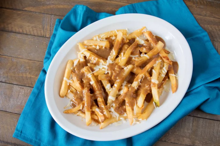 Kızarmış patatesleri 4 servis tabağına eşit miktarda paylaştırın. Üzerlerine eşit miktarda gravy sos dökün.
