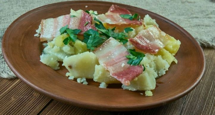Malzemelerin listesi genellikle dilimlenmiş patates, soğan, domuz pirzolası (veya domuz pastırması), karabiber ve tuzu içerir. Patatesler, soğanlar ve domuz eti bir fırın tepsisine dizilir, ardından su, tuz ve karabiber ile doldurulur. Patatesler yumuşayana ve domuz eti tamamen pişene kadar yemeğin üzeri kapatılır ve pişirilir.