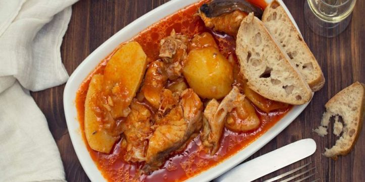Malzemeler genellikle zengin bir soğan, beyaz şarap, zeytinyağı ve domates sosuna eklenir ve daha sonra tüm malzemeler, safran ve hindistan cevizi gibi çeşitli taze otlar ve baharatlarla cömertçe baharatlanır. Yemek genellikle çıtır kızarmış ekmek dilimleri ile tamamlanan ve servis edilen ulusal bir spesiyalitedir.