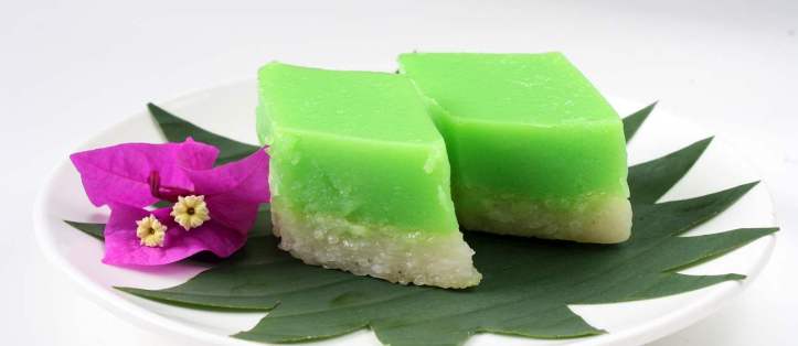 Üst katman için, hindistancevizi sütü, şeker, mısır nişastası, pirinç unu, yumurta ve pandan esansını (veya pandan yaprağı özünü) bir kasede iyice karıştırın.