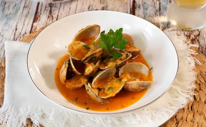 Almejas a la marinera servis edildiğinde geleneksel olarak sosu temizlemek için ekmek eşlik eder. Yemek bölgedeki çoğu bar ve restoranda bulunabilir.