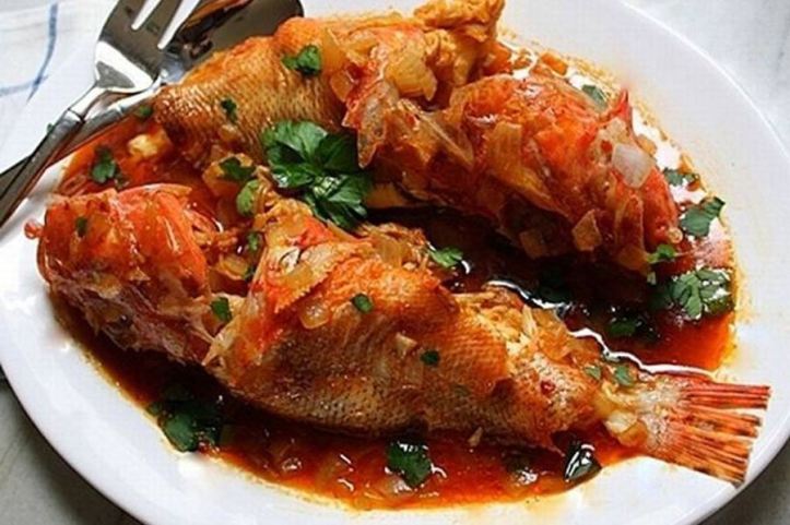 Bu rustik yemek, balık ve tatlı ve acı kırmızı biber ve soğan ile zenginleştirilmiş zengin bir domates sosunu birleştirir. Korfu’dan geliyor ve muhtemelen brodetto olarak bilinen benzer bir Venedik yemeğine göre modellenmiştir. Korfu’da çeşitli balık türleri ile hazırlanabilir, ancak akrep balığının en iyi seçim olduğuna inanılır.