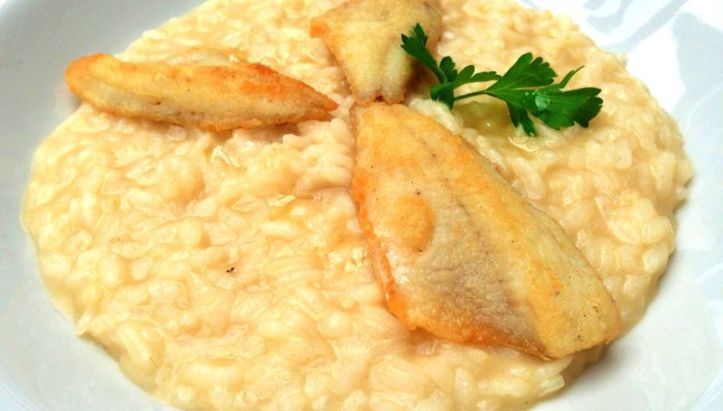 Soğanlar yemeklik doğranır, sıvıyağda kavrulur ve pirinçler aynı tavada kavrulur. Beyaz şarap tavaya eklenir ve buharlaşır buharlaşmaz sebze suyu ilavesiyle risotto pişirilir. Narin ve yumuşak etiyle beğenilen levrek filetoları ya un serpilip tavada tereyağı ve adaçayı ile pişirilir ya da çırpılmış yumurtaya batırılıp galeta ununa bulanarak tereyağı ve adaçayı ile pişirilir.