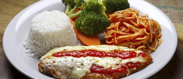 Chicken parmigiana, üzerine domates sosu ve peynir konulan ekmek kırıntıları kaplı tavuk göğsünden oluşan, ardından peynir eriyene ve tavuk uygun şekilde pişene kadar pişirilen bir kümes hayvanı yemeğidir. Kulağa İtalyan gibi gelen bir isme sahip olmasına rağmen, chicken parmigiana aslında melanzana alla parmigiana veya eggplant parmigiana adlı bir İtalyan yemeğinden türetilen bir Amerikan yemeğidir.