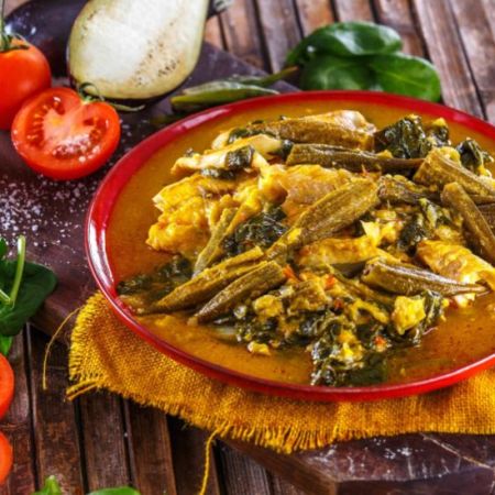 Temel malzemeler arasında fasulye ve pirinç, domuz eti ve tavuk, çeşitli soslar ve domates, soğan gibi sebzeler bulunur. Sarımsak gibi baharatlar da sıklıkla görülmektedir. Manyokla yapılan bir tür yulaf lapası olan Funge temel bir yemektir.
