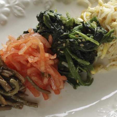 Kore mutfağı büyük ölçüde pirinç, sebze ve ete dayanmaktadır. Geleneksel Kore yemekleri, buharda pişirilmiş kısa taneli pirince eşlik eden yan yemeklerin sayısına göre adlandırılır. Kimchi neredeyse her öğünde servis edilir. Yaygın olarak kullanılan bileşenler arasında susam yağı, doenjang (fermente fasulye ezmesi), soya sosu, tuz, sarımsak, zencefil, gochugaru (pul biber), gochujang (fermente kırmızı biber ezmesi) ve napa lahana bulunur.