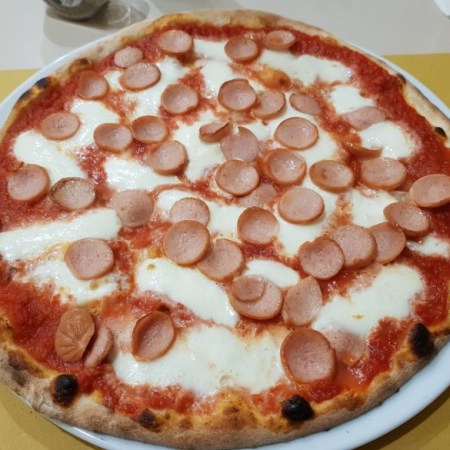 İtalya’da, bir restoranda olduğu gibi resmi ortamlarda servis edilen pizza, dilimlenmeden sunulur ve bıçak ve çatal kullanılarak yenir. Ancak gündelik ortamlarda, elde tutularak yenmek üzere dilimler halinde kesilir.